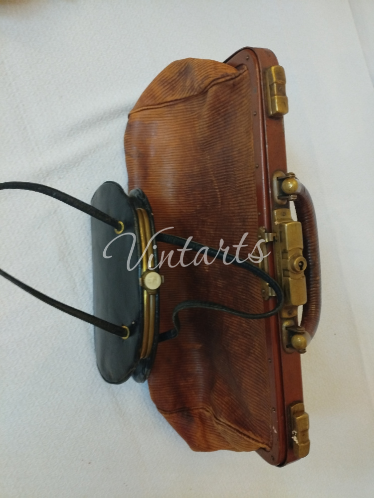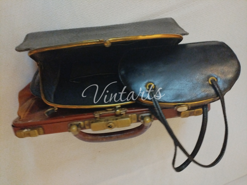 Сумка-саквояж производство Германия 40-50гг.. Цвет коричневый, ручка короткая, "жесткая", застежка бронза. Бренд.... Размеры: длина 40см., высота 20см. - цена 8 500 руб.