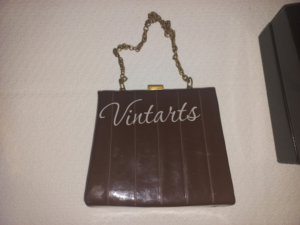 6. Фото 5. Сумка коричневого цвета, лаковая - прострочка, ручка цепочка, застежка бронза. Размеры: длина 17см., высота 16см. - цена 4 200 руб.