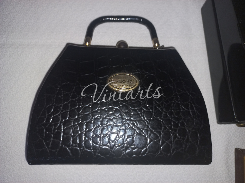 3. Фото 2. Сумка черного цвета (под крокодила), "жесткой формы - сундучок), лаковая с короткой ручкой бренд G.VERSACE производство Италия. Размеры: длина 20см., высота 16см. - цена 5 000 руб.