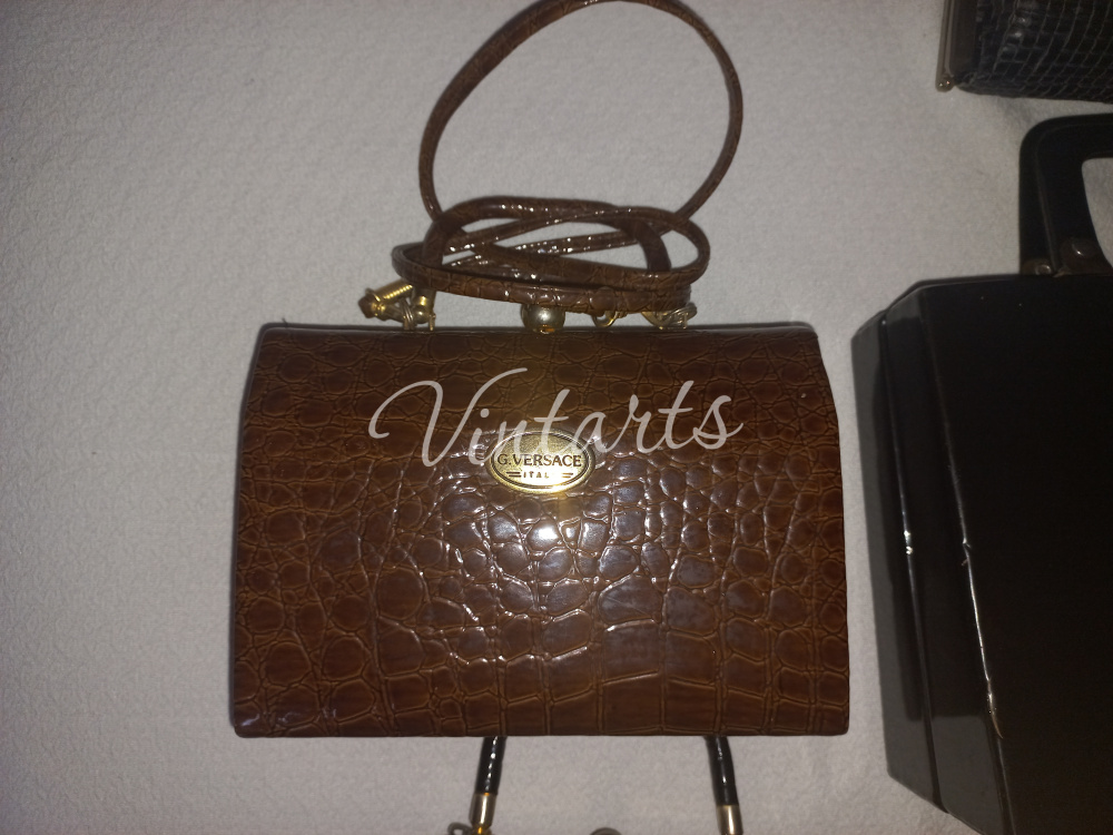 2. Фото 1 Сумка коричневого цвета (под крокодила), "жесткой формы- сундучок) лаковая с длинной ручкой бренд G.VERSACE производство Италия.