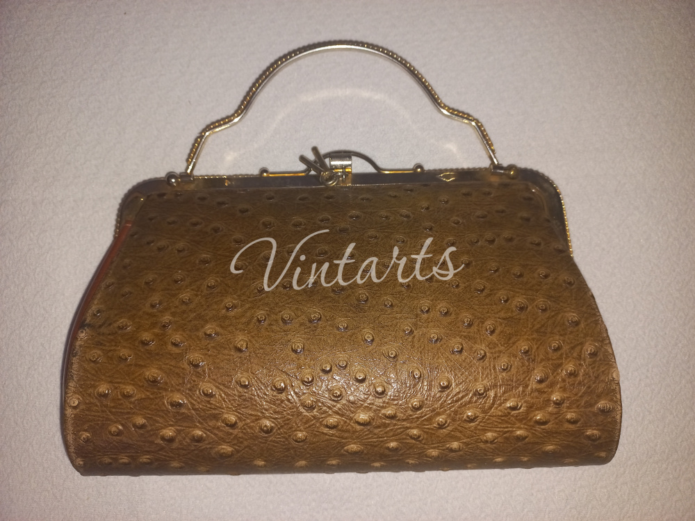 9. Фото 9. Сумка светло-коричневого цвета на металлической ручке, тесненная кожа. Размеры: длина 26см., высота 17см. - цена 8 500 руб.