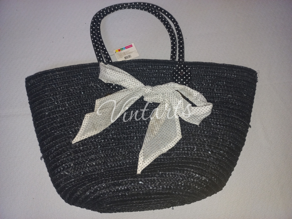 Сумка черного цвета из искусственной соломки с короткими ручками, застежка бантик выполнена из бронзы, винтаж. Размеры: длина 26см., высота 25 - цена 1 700 руб.
