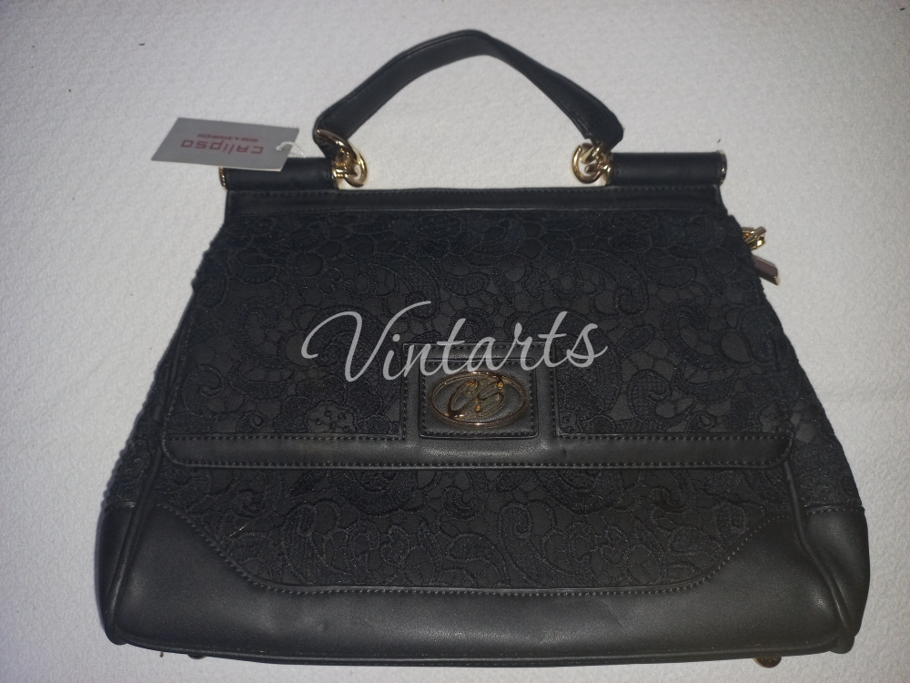 Сумка черного цвета с кружевными вставками черного цвета (стильная), новая с этикеткой фирма Calipso. Есть дополнительный длинный ремешок. Размеры: длина 35см., высота 26см. - цена 2 100 руб.