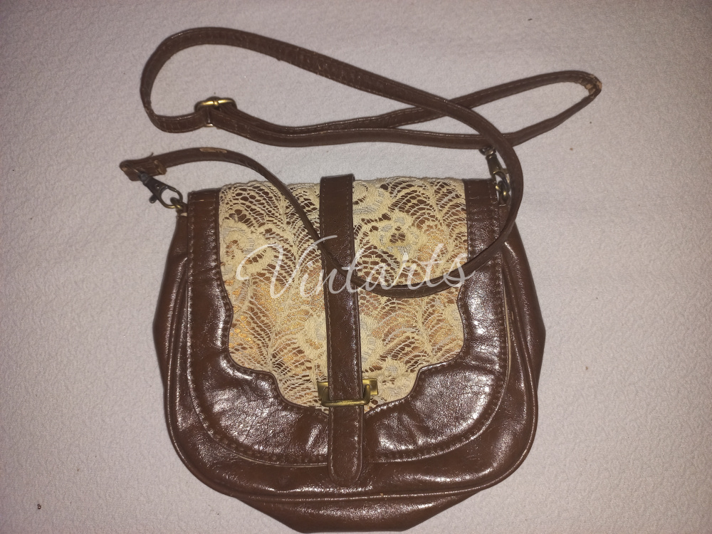 Сумка коричневого цвета с кружевными вставками на длинном ремешке. Размеры: длина 22см., высота 20см. - цена 1 500 руб.